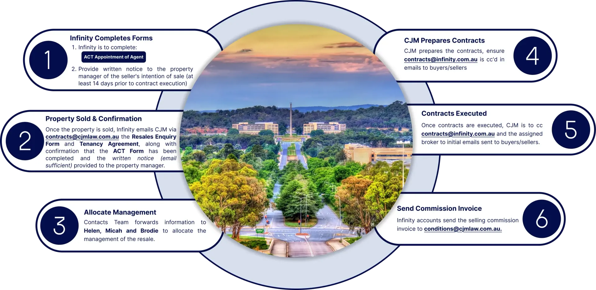 Infinity to complete the CJM Resales Enquiry Form and forward via email to contracts@cjmlaw.com.au for each Infinity resale.