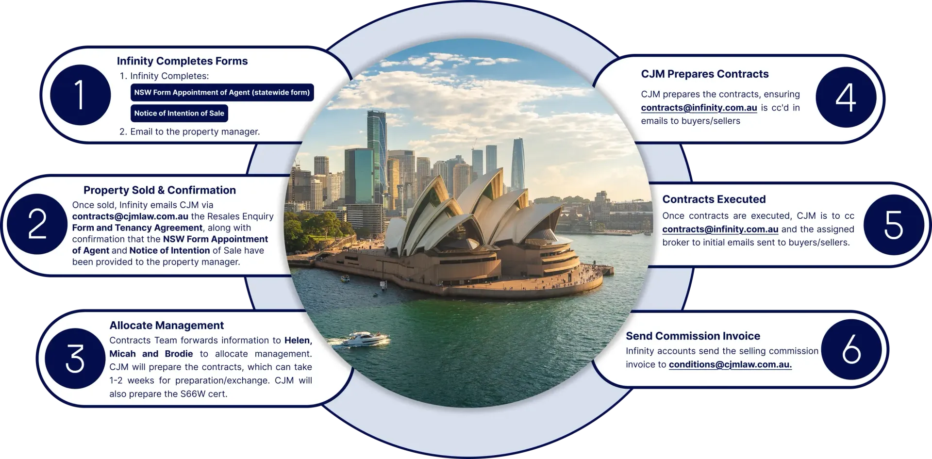 Infinity to complete the CJM Resales Enquiry Form and forward via email to  contracts@cjmlaw.com.au for each Infinity resale.