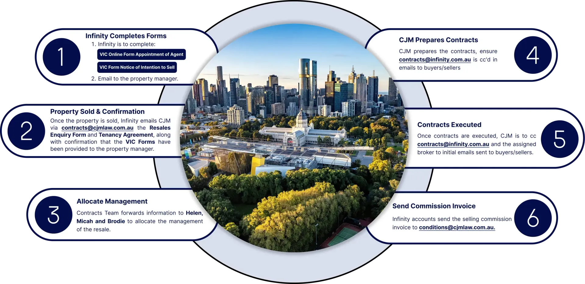 Infinity to complete the CJM Resales Enquiry Form and forward via email to contracts@cjmlaw.com.au for each Infinity resale.